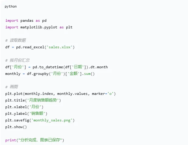 假设你有一份Excel销售数据,想按月份汇总金额,再画个折线图。