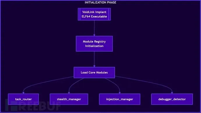 VoidLink采用基于插件的架构设计,各组件在共享注册框架内独立运行。执行时,恶意软件会初始化模块注册表并加载四个核心组件:负责命令分发的任务路由器、用于规避检测的隐匿管理器、执行代码的注入管理器,以及提供反分析保护的调试器检测器。该恶意软件在激活操作功能前会进行详细的主机画像分析,探测云元数据API、Docker和Kubernetes等容器环境,以及EDR/AV检测状态和内核版本等安全态势指标。这种情报驱动的方法使VoidLink能够根据每个发现的环境选择适当的隐匿机制和攻击技术。多云攻击与防御建议
