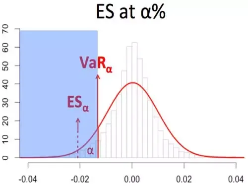 VaR 的局限性导致其不具备度量投资组合尾部风险的能力,它将损失可能发生的概率限定为一个值,因此低估了实际的市场风险。此外,在采用 VaR 确定监管资本要求时,监管者发现了无法捕获「厚尾风险」等诸多缺陷。若要度量投资组合损失超过 VaR 损失时所遭受的平均损失程度,更为准确地进行市场风险管理,就需要通过 ES(Expected Shortfall 期望损失)模型来实现。