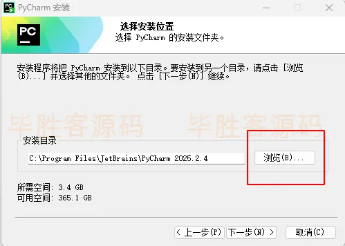 (3)点击 “浏览(B)...”,选择安装的位置