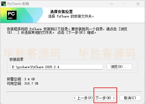 我这里安装在E:\pycharm 里,然后点击 “下一步”