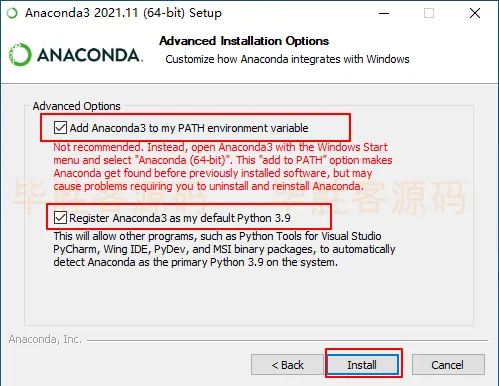 (6)勾选下面的选项,然后点击 Install (第二个选项如果电脑本身已经安装了其他版本的python就会勾选不上,这时就不用勾选第二个选项了)