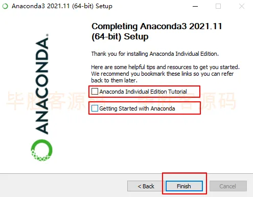 (10)取消勾选,然后点击 Finish