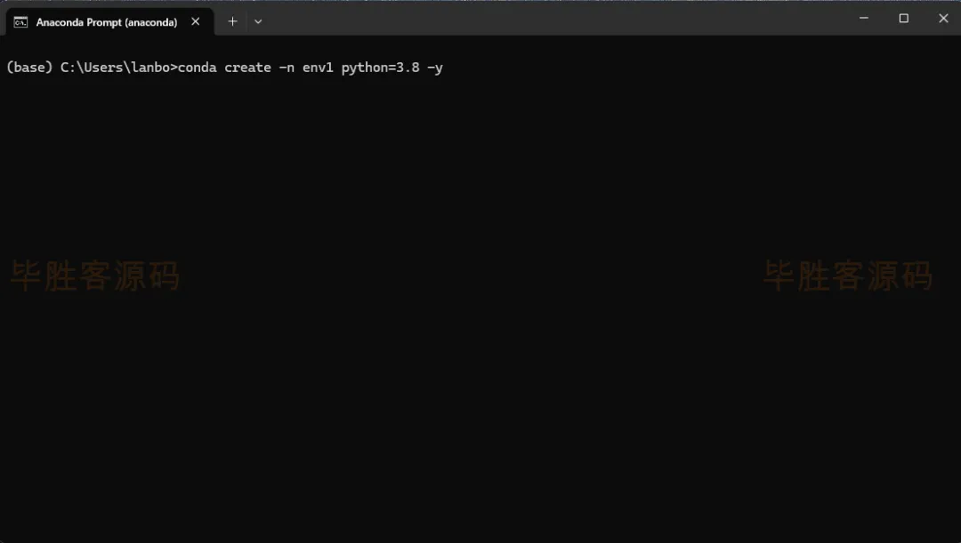 输入 conda create -n env1 python=3.8 -y 命令,然后按下回车键,创建一个名称为 env1 的虚拟环境,并在虚拟环境中安装3.8版本的python;可以更改为其他版本的python,例如如果项目要求的python版本为3.9,则应该改为 conda create -n env1 python=3.9 -y