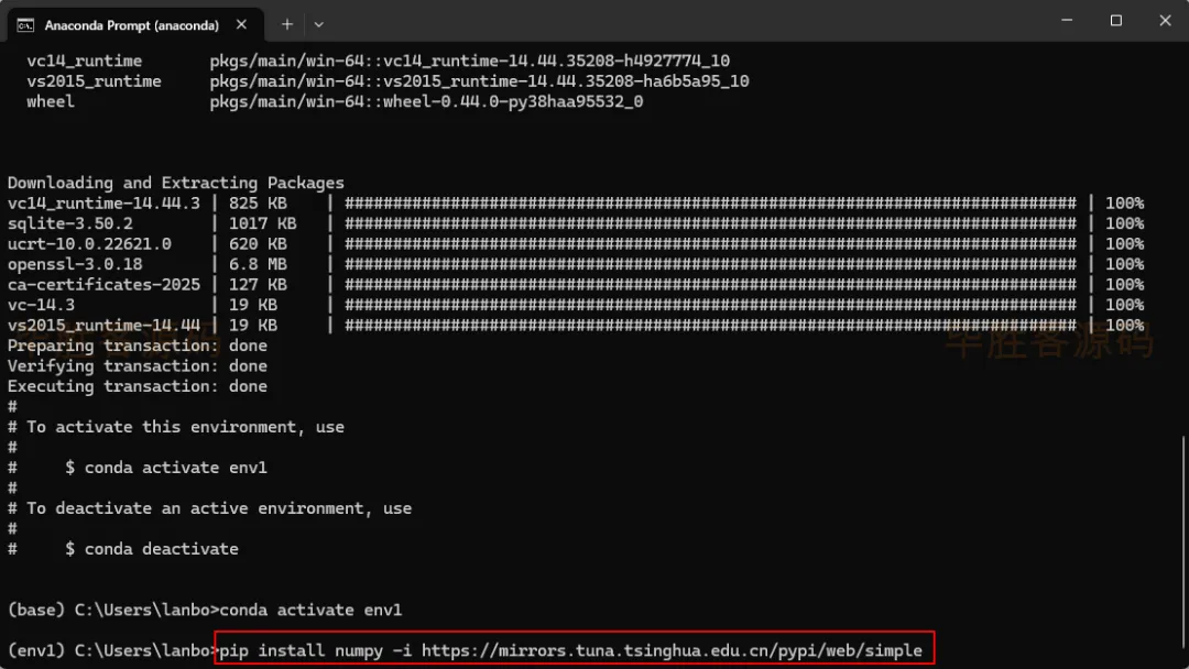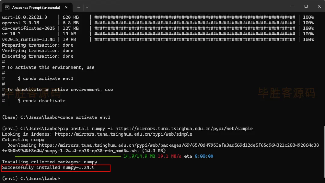 是指用清华源的numpy资源能够更快的安装