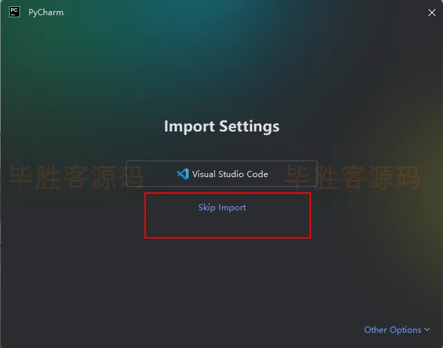 如果出现下面的界面,点击 Skip Import
