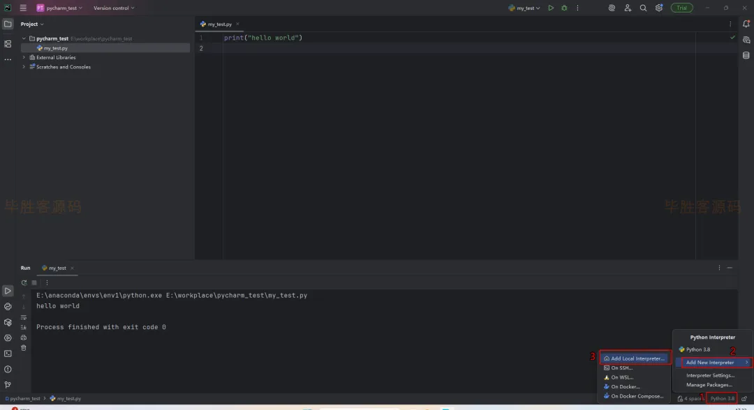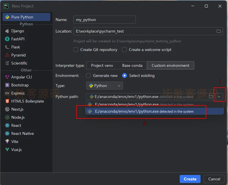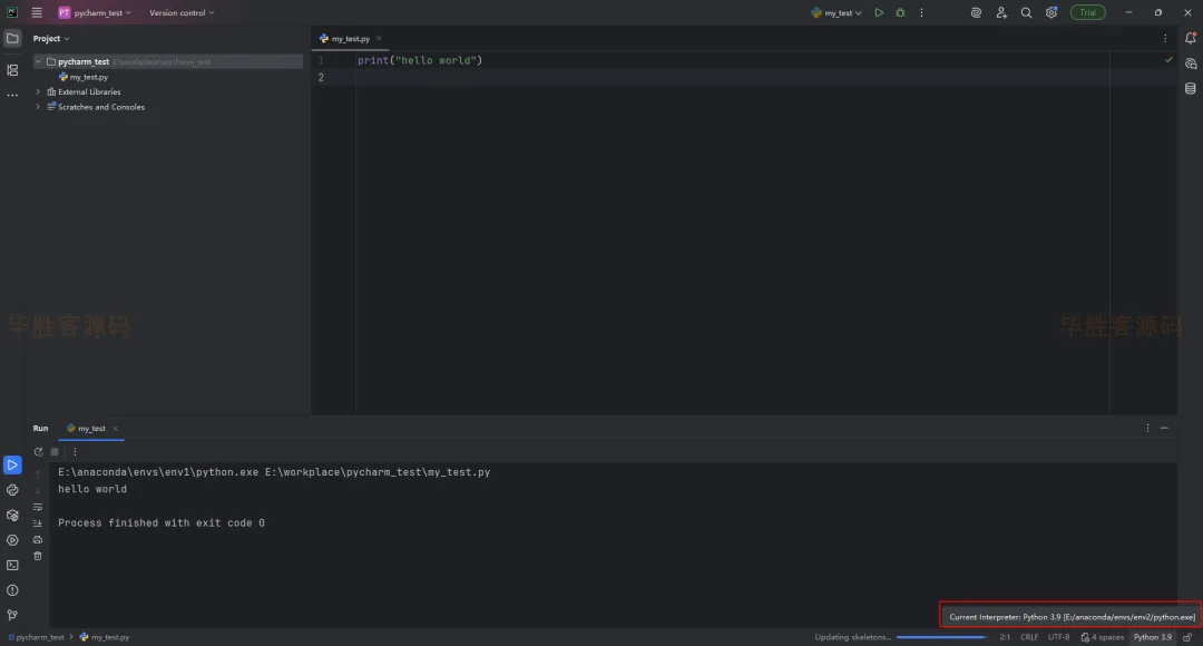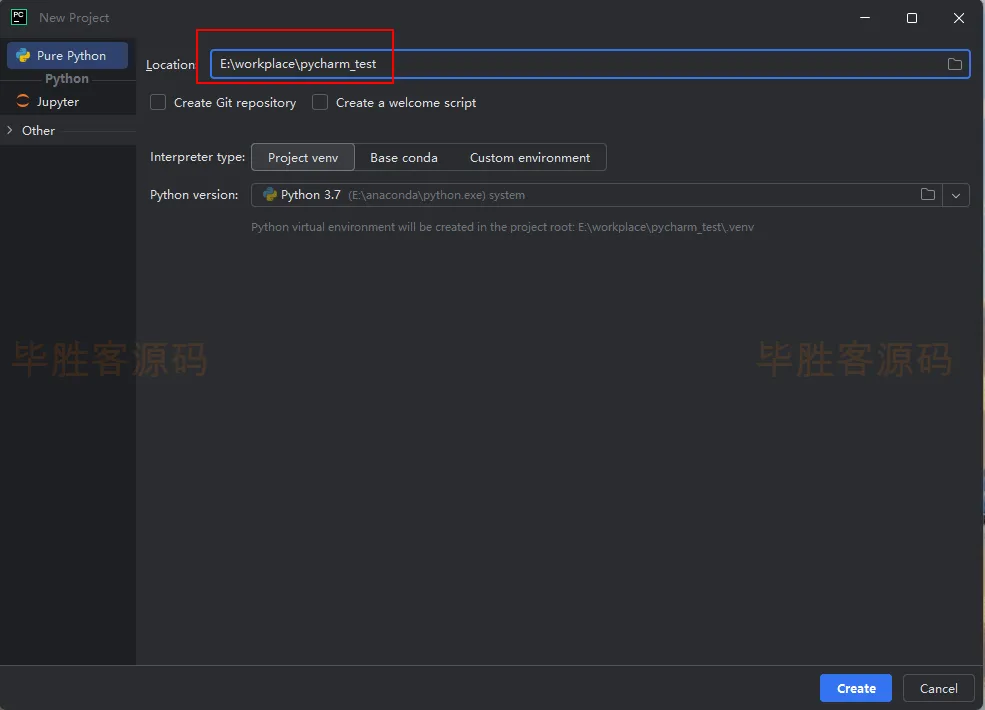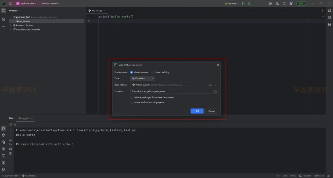 (3)我这里的项目位置是E:\workplace\pycharm_test ,项目名称为 my_python
