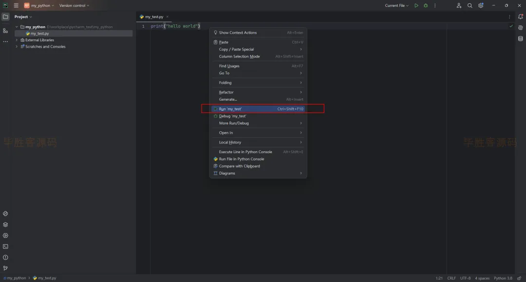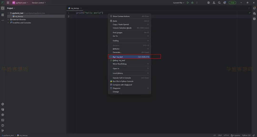 (12)鼠标右键,点击 Run 'my_test'