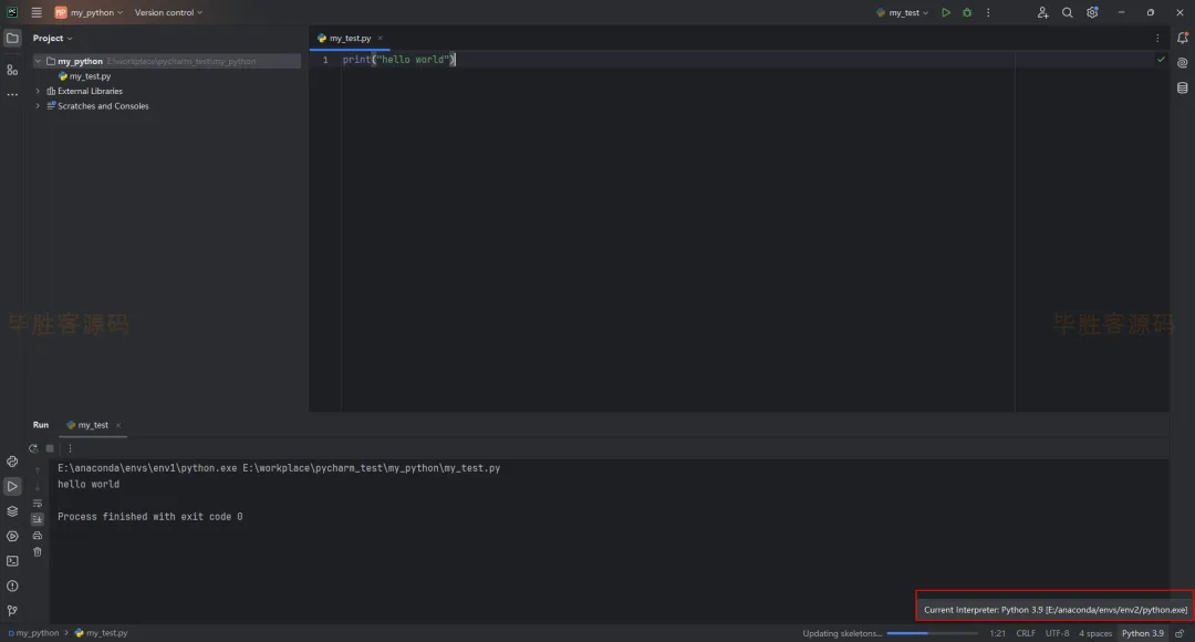 假设现在已经按照上面建虚拟环境的方法新建了一个虚拟环境,虚拟环境的名称为 env2,里面的python版本是3.9