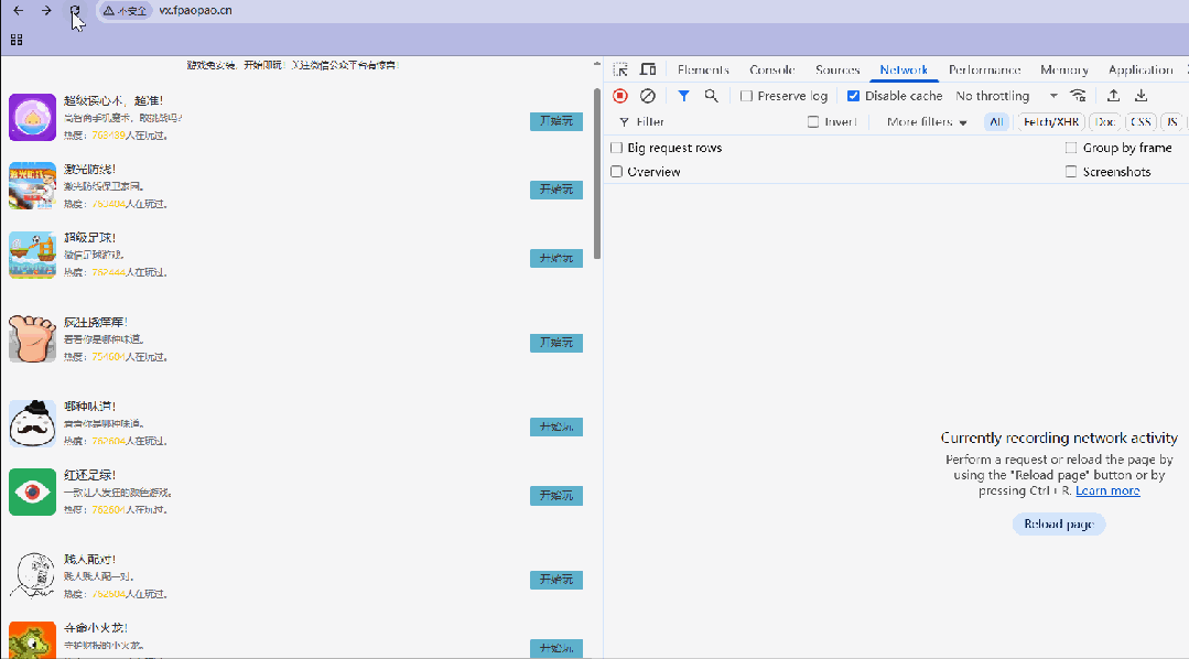 //创建存放源码文件路径[root@web01_0.21[ /code] mkdir /code01[root@web01_0.21[ /code01] rz -y //上传游戏源码文件[root@web01_0.21[ /code01]# ls -l总用量 18452-rw-r--r-- 1 root root 18891168 7月 29 20:26 Day48-老男孩Linux77期html小游戏项目.zip[root@web01_0.21[ /code01] unzip Day48-老男孩Linux77期html小游戏项目.zip -d /code01/ //解压文件到指定目录Archive: Day48-老男孩Linux77期html小游戏项目.zip creating: /code01/html5/ creating: /code01/html5/ceshi/ creating: /code01/html5/ceshi/anli...// nginx站点配置文件名关联[root@web01_0.21[ /code01/html5]# vim /etc/nginx/conf.d/vx.fpaopao.cn.confserver { listen 80; server_name vx.fpaopao.cn; location / { root /code01/html5/; index index.html; }}//检查语法并平滑重启[root@web01_0.21[ /code01/html5]# nginx -tnginx: the configuration file /etc/nginx/nginx.conf syntax is oknginx: configuration file /etc/nginx/nginx.conf test is successful[root@web01_0.21[ /code01/html5]# systemctl reload nginx