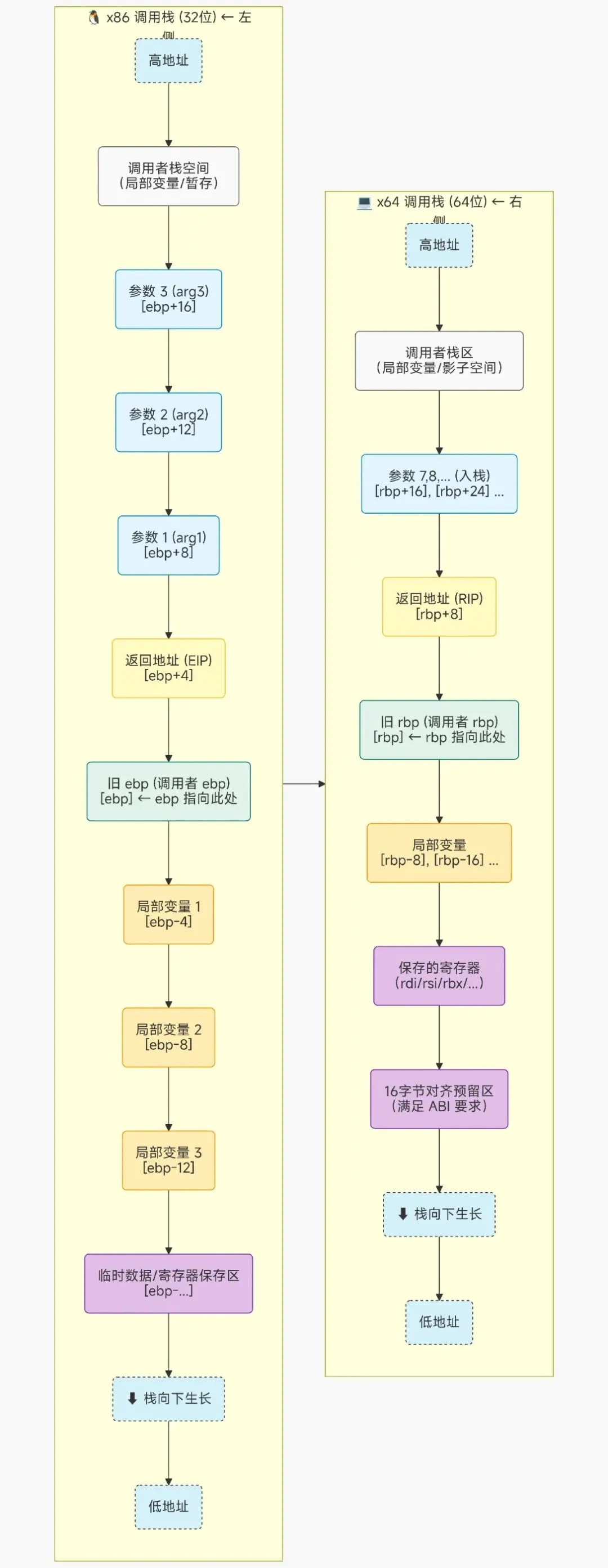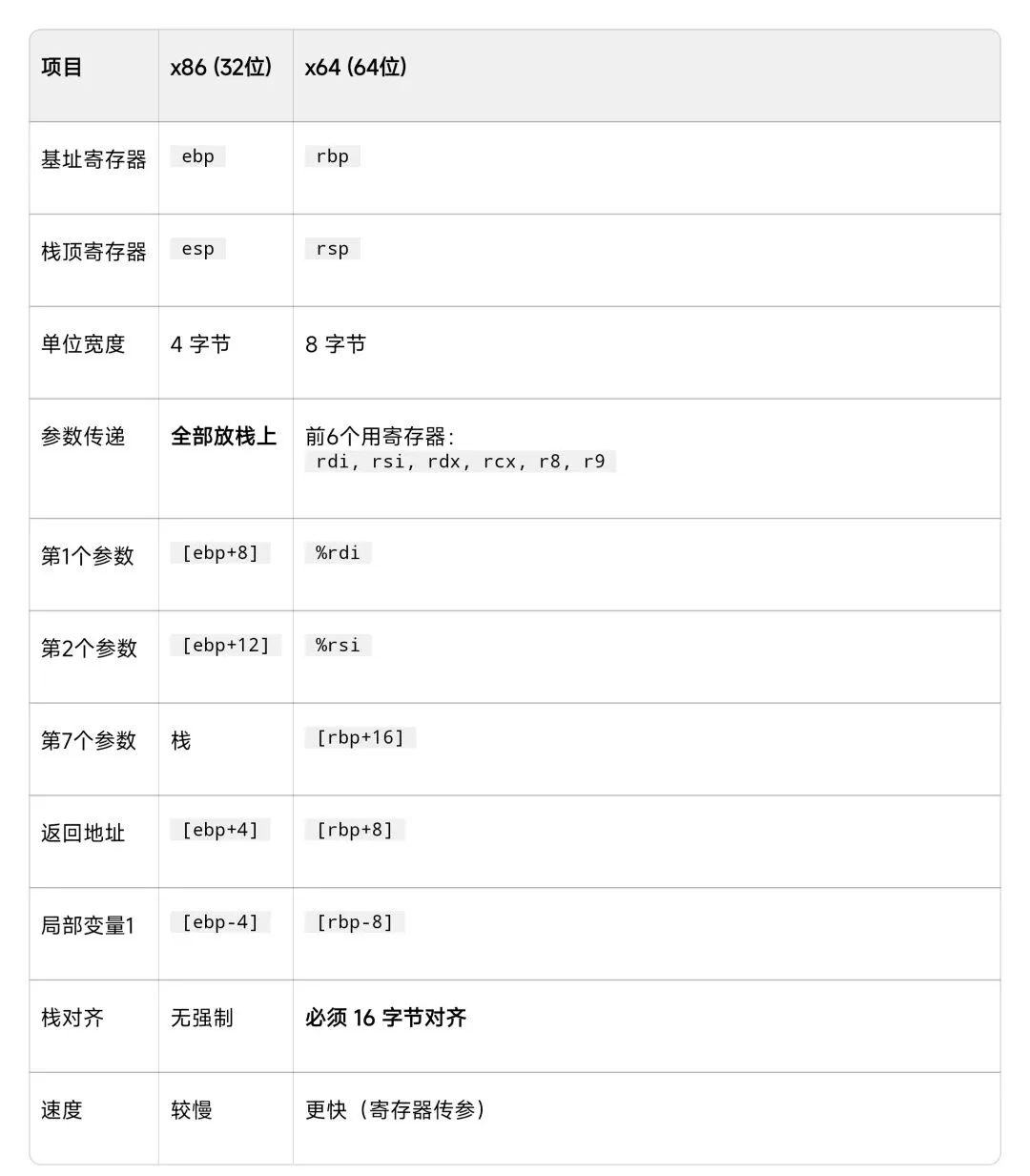 2) 函数调用、局部变量、返回地址、寄存器上下文