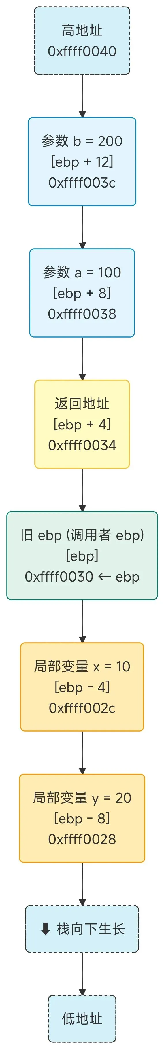 2) 每调用一个函数,就压入一个 Stack Frame(栈帧)。
