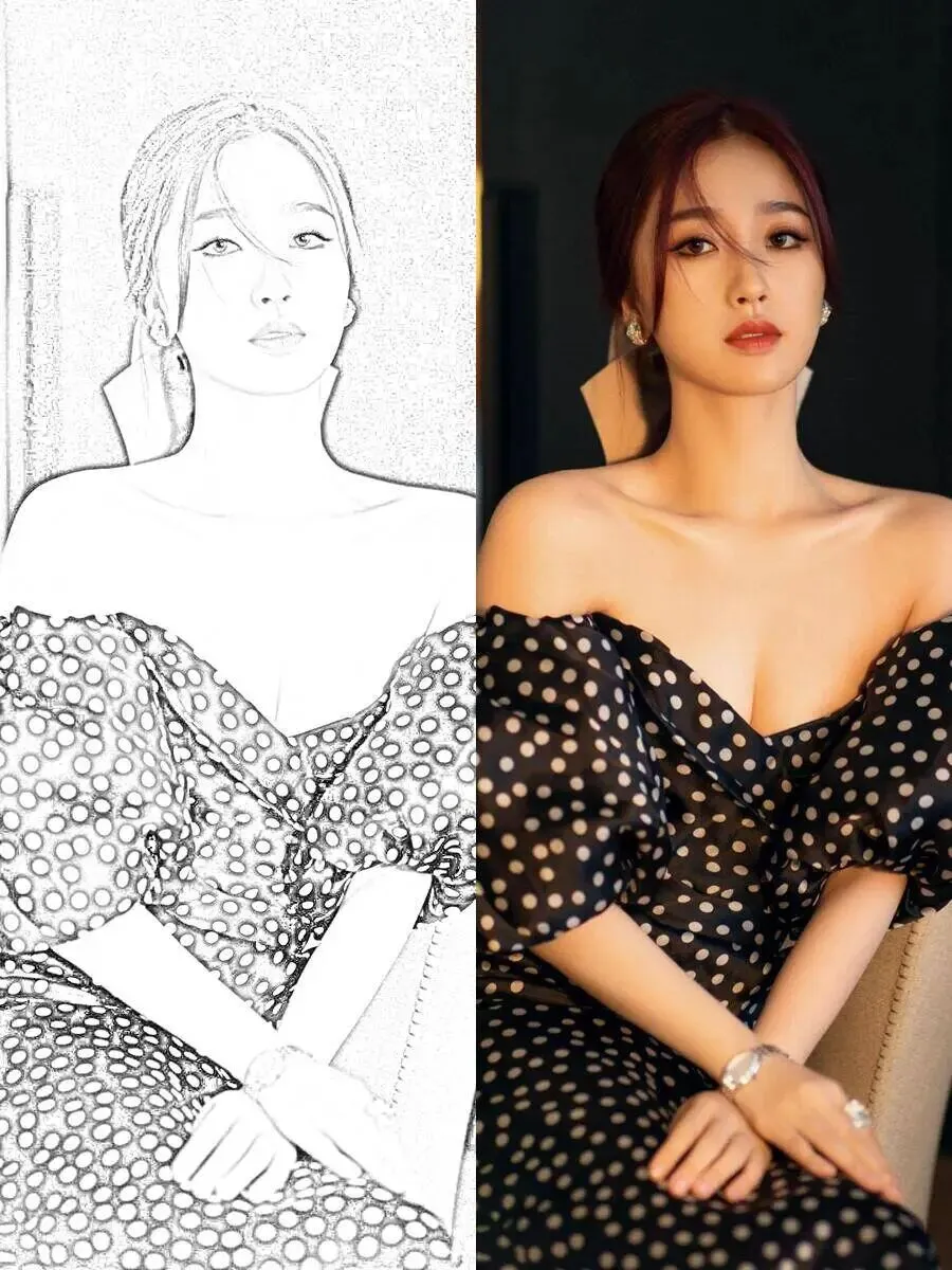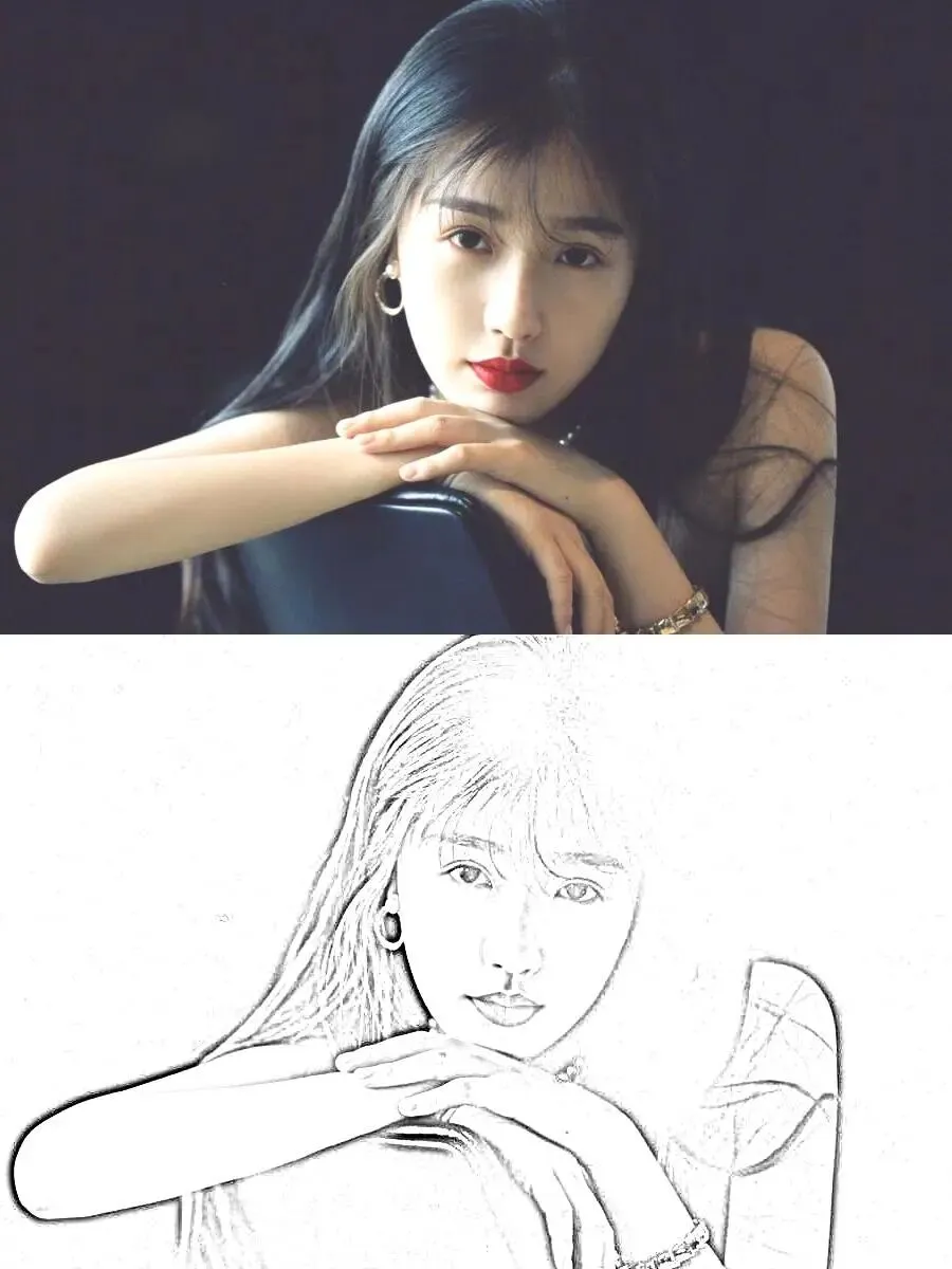 原图是精致的写真照,经过处理后,人物的轮廓、发丝和衣物纹理都清晰地保留了下来,瞬间有了艺术感。