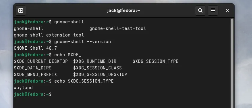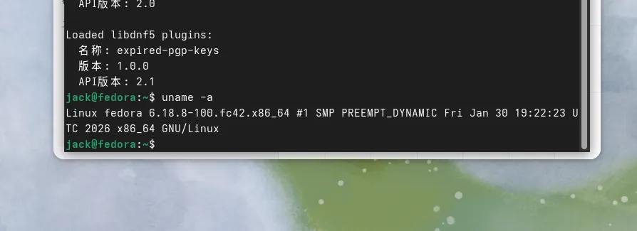 该命令执行后,系统自动重启,然后进入到自动升级安装的界面,还是什么都不需要做,只要等着就好了。开始出现更新进度,也许是因为要计算那么多软件包的兼容性和依赖问题,所以很慢,在0%的进度上停留了好一阵。之后也就不再盯着等了,让电脑自动升级即可。等过了一阵回来,系统更新已经完成了,尝试唤醒桌面,看到了用户登录的界面。登录之后,就自动进去的新的系统。升级到Fedora Linux 42以后,我发现电脑配置没有变化的情况下,桌面操作异常的流畅,没有出现花屏的情况。点击菜单和软件,启动也比较快。我查看了一下,好家伙,内核是最近才更新的6.18,1月30日打包的。桌面环境是GNOME 48,桌面协议是纯正Wayland。怪不得体验这么好,这其中DNF5的功劳应该也很大。Fedora Linux这种技术优先的体验感,真的挺好。总的来说,从40跳过41直接升级42,中途没有任何问题。没有依赖错误,没有异常。接下来再升级一下,就到最新的Fedora Linux 43了。不过看到Fedora Linux 42的这种使用效果,很推荐可以选这个版本作为Fedora工作站使用。