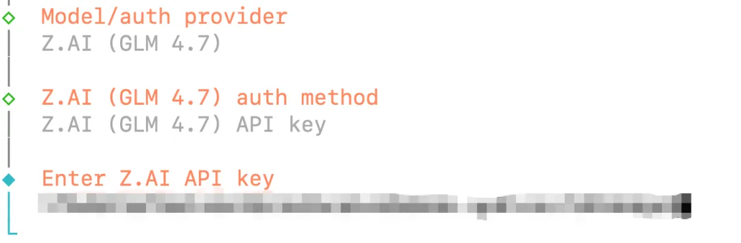 第三步:配置模型(根据实际情况配置,可跳过后面再配置),我们这里选择Z.AI并配置好API key
