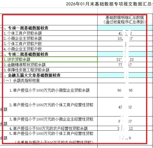 将专项贷款、绿色贷款、普惠贷款、保障性安居工程贷款、涉农贷款、扶贫贷款、创业贷款、助学贷款等核心金额、户数指标,精准写入监管核查表对应单元格。