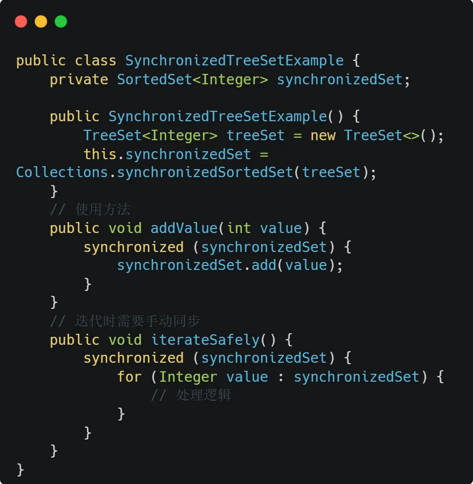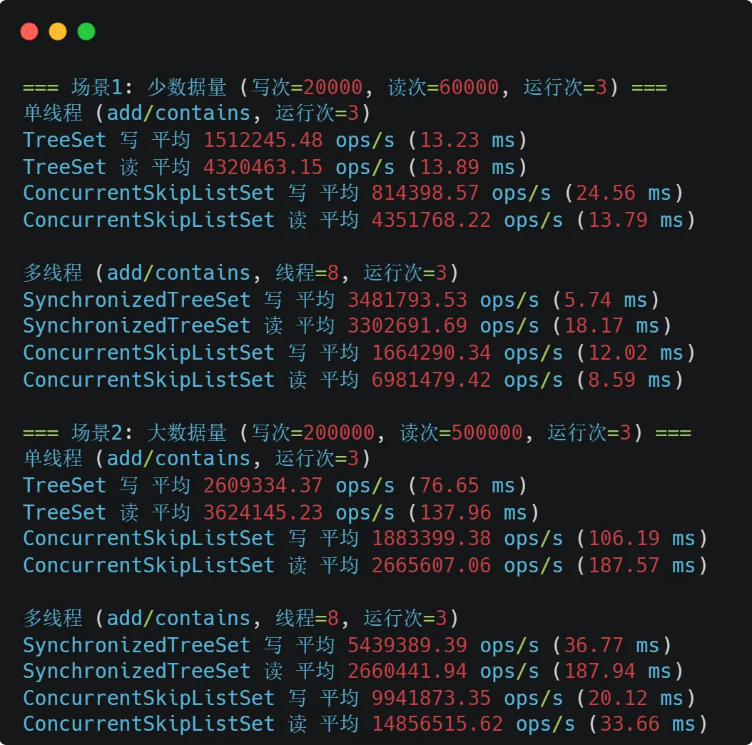 小数据量但写入高并发 : SynchronizedTreeSet可能写吞吐不差,但读性能通常不如 ConcurrentSkipListSet,且锁竞争风险更高