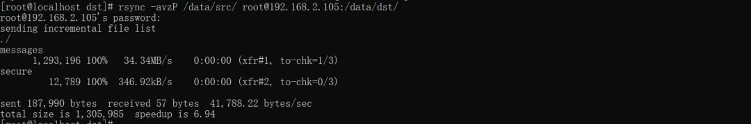 #断点续传rsync -avzP /data/src root@192.168.2.105:/data/dst/