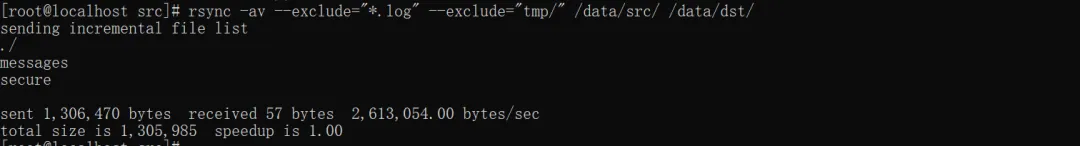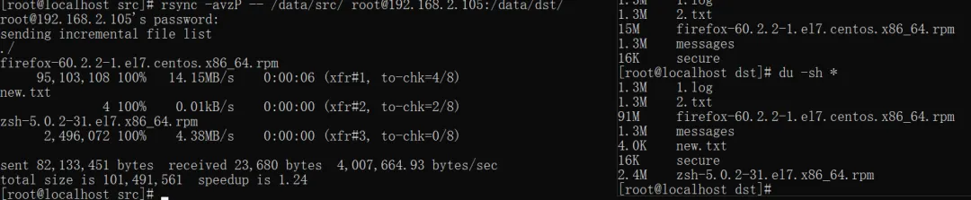 #增量同步,仅同步src新增的文件,src目录新增new.txt文件rsync -avu /data/src /data/dst/