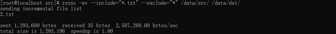 # 仅同步.txt文件,排除其他所有文件,include和exclude参数不能少rsync -av --include="*.txt" --exclude="*" /data/src/ /data/dst/