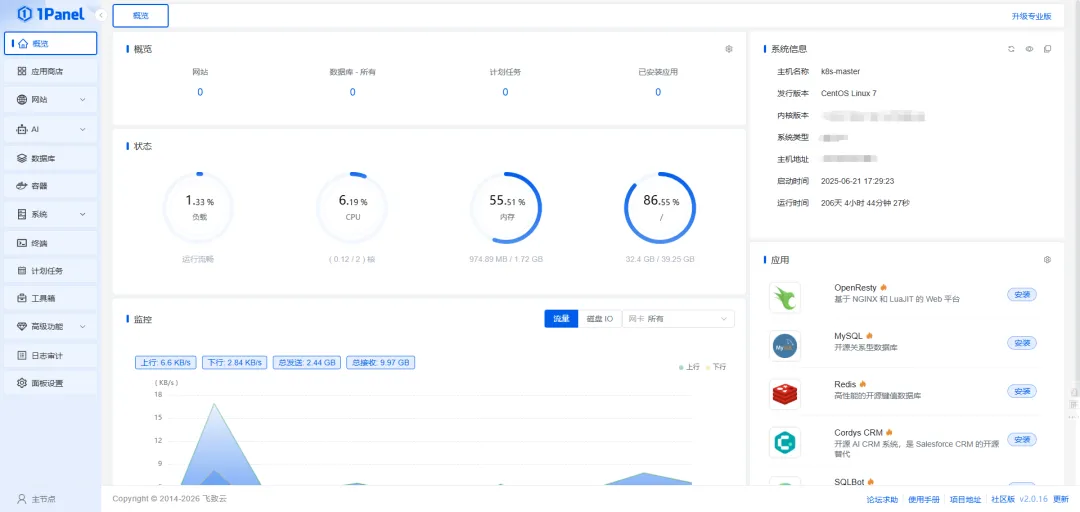 1Panel 是一个现代化、开源的 Linux 服务器运维管理面板。