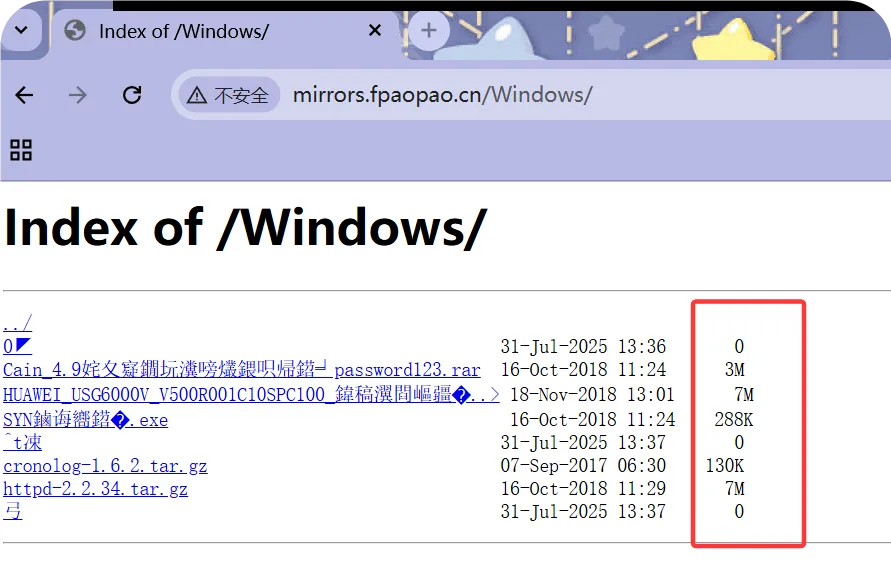[root@web01_0.21[ /mirrors/Windows]# cat /etc/nginx/conf.d/mirrors.fpaopao.cn.confserver { listen 80; server_name mirrors.fpaopao.cn; location / { root /mirrors; index index.html; autoindex on; autoindex_exact_size off; //指定是否应在目录列表中输出确切的文件大小,on显示字节,off显示大概单位。 }}//检查语法&重载