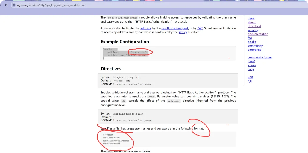 参考链接:https://nginx.org/en/docs/http/ngx_http_auth_basic_module.html