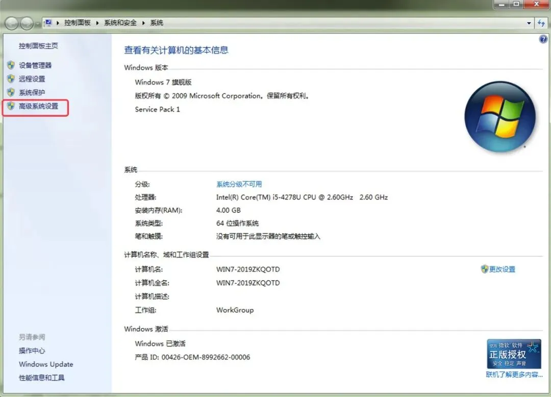 - • 打开 Windows 的“系统”窗口并点击“高级系统设置”。