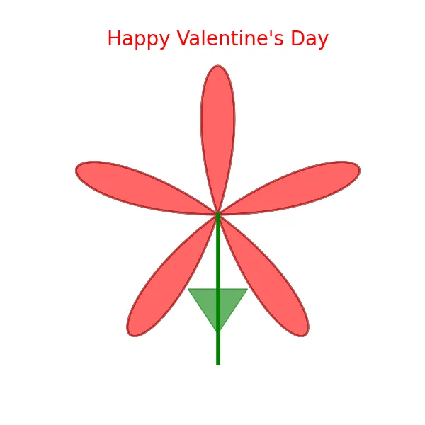 第16行:用fill函数填充花瓣区域,颜色为红色,透明度0.6,边缘为深红色,线宽2。