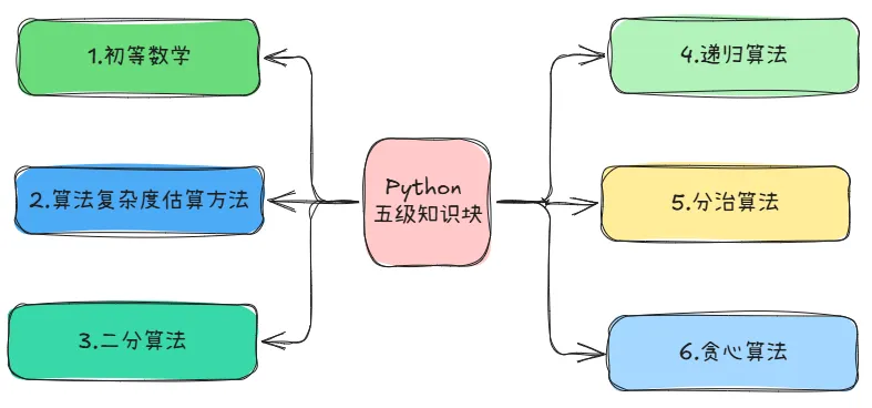 回到编程,如果不面向计算思维逻辑,Python编程也可以比较容易地做出一些有趣的、实用的、强大的东西,应用性很高。如果要面向编程思维,面向编程本质,除了"应用编程"之外还想有逻辑思维上的有效收获,那就一起来看看通过Python编程,小朋友们要能掌握的核心知识。GESP Python 等级虽然设定了8级,但是6级以上,形式大于意义(个人观点)。