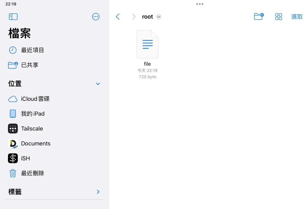 打开 iOS 的「文件」App,找到 iSH Shell 的目录(通常能看到 root 目录),就能把文件移动/分享给其它应用。