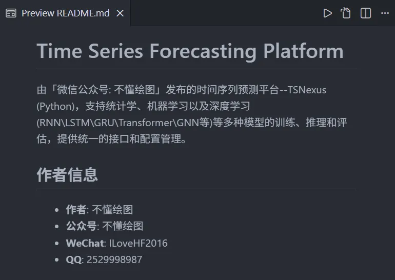 经过一段时间的准备,并根据本公众号关于时间序列预测问题的相关总结,我们开发了专门用于处理时间序列预测问题的自动化平台--TSNexus (Python) V1.0.0,支持统计学、机器学习以及深度学习(RNN\LSTM\GRU\Transformer\GNN等)等多种模型的训练、推理和评估,提供统一的接口和配置管理。