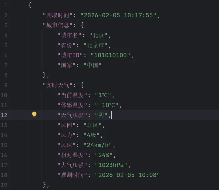 1.爬虫开发的核心是 “合规”:优先遵循 Robots 协议,选择官方开放的 API 而非爬取非公开页面,可完全规避法律风险;2.和风天气是学习爬虫的优质场景:免费、合规、文档完善,其 JWT 认证机制也是企业级 API 调用的典型实践;3.代码设计需注重健壮性:处理参数错误、字段缺失等异常,确保程序稳定运行。本示例仅用于学习目的,请勿将采集的数据用于商用,如需商用请联系和风天气开通商业版权限。三、小结
