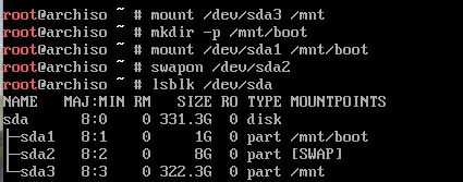 # 查看挂载情况,确认分区都正确挂载lsblk /dev/sda