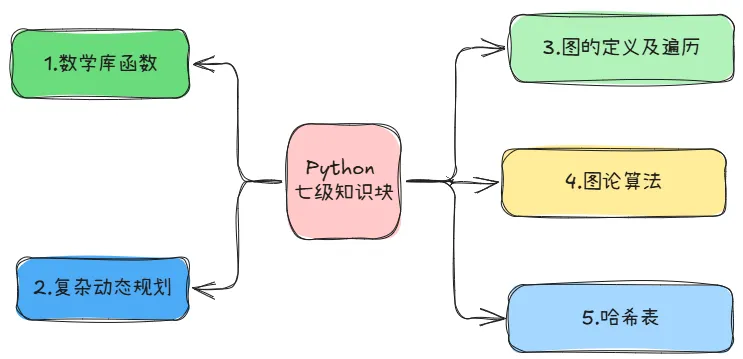 回到编程,如果不面向计算思维逻辑,Python编程也可以比较容易地做出一些有趣的、实用的、强大的东西,应用性很高。如果要面向编程思维,面向编程本质,除了"应用编程"之外还想有逻辑思维上的有效收获,那就一起来看看通过Python编程,小朋友们要能掌握的核心知识。GESP Python 等级虽然设定了8级,但是6级以上,形式大于意义(个人观点),如果小朋友只对Python情有独钟,不妨考虑一下隔壁赛道的CCF大模型能力认证(LMCC)。