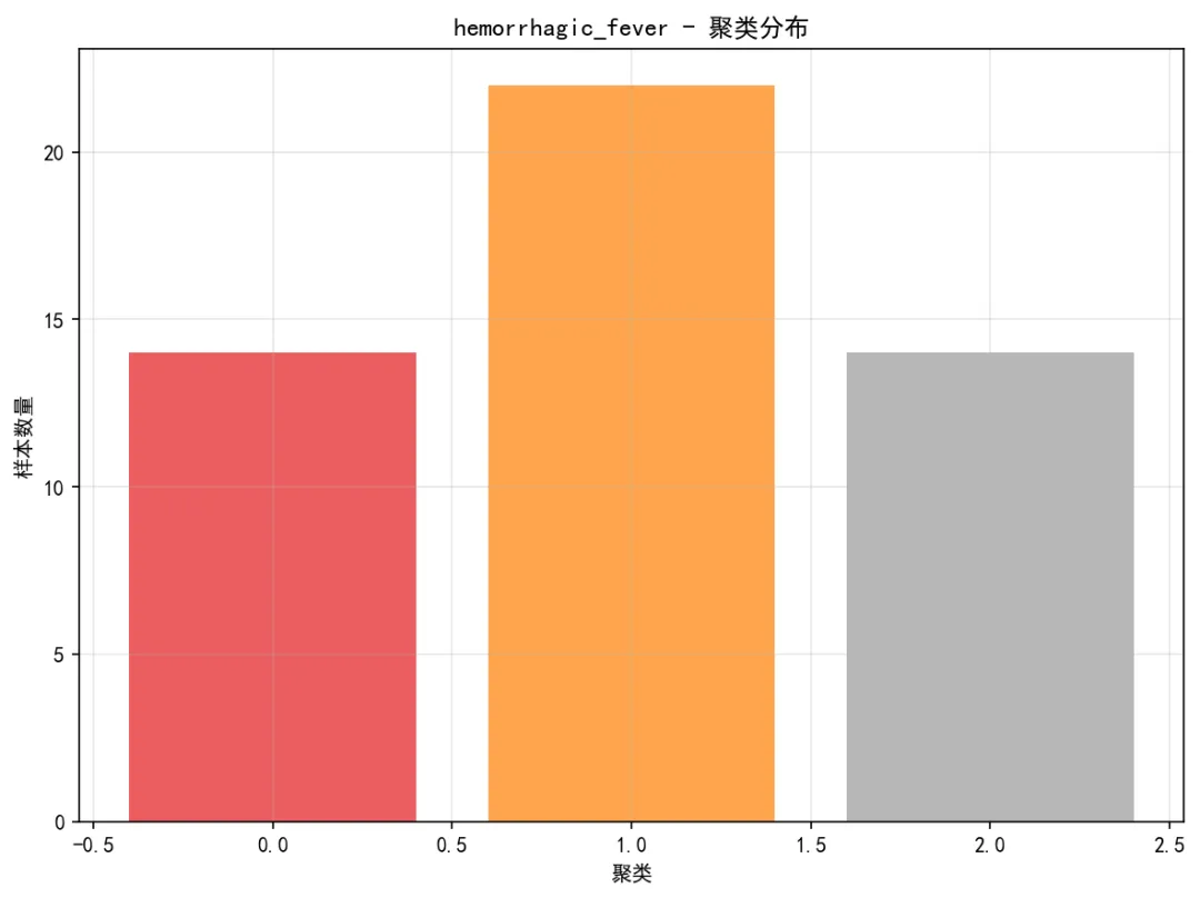 # 3. 残差图 pred_df['Residuals'] = pred_df['Actual'] - pred_df['Predicted'] plt.figure(figsize=(8, 6)) valid_residuals = pred_df.dropna(subset=['Predicted', 'Residuals'])if len(valid_residuals) > 0: plt.scatter(valid_residuals['Predicted'], valid_residuals['Residuals'], alpha=0.5, color='purple', s=10) plt.axhline(y=0, color='red', linestyle='--', linewidth=1) plt.title(f'{disease} - 残差图') plt.xlabel('预测值') plt.ylabel('残差') plt.grid(True, alpha=0.3) plt.tight_layout() plt.savefig(os.path.join(results_path, 'Plots', f'{disease}_Residual_Plot.png'), dpi=150, bbox_inches='tight') plt.close()# 4. 聚类结果可视化if disease in clustering_results: plot_clustering_results(clustering_results[disease], disease, results_path)# 保存总体结果if results_summary: results_df = pd.DataFrame(results_summary) results_df.to_csv(os.path.join(results_path, "Model_Performance_Summary.csv"), index=False, encoding='utf-8-sig')# 保存预测结果 all_predictions = pd.concat(predictions_list, ignore_index=True) all_predictions.to_csv(os.path.join(results_path, "Predictions","All_Disease_Predictions.csv"), index=False, encoding='utf-8-sig')# 保存聚类结果if clustering_results: joblib.dump(clustering_results, os.path.join(results_path, "Models", "clustering_results.pkl"))# 性能比较图 plt.figure(figsize=(10, 6)) sorted_results = results_df.sort_values('Test_R2') colors = plt.cm.RdYlGn((sorted_results['Test_R2'] - sorted_results['Test_R2'].min()) / (sorted_results['Test_R2'].max() - sorted_results['Test_R2'].min())) bars = plt.bar(range(len(sorted_results)), sorted_results['Test_R2'], color=colors, alpha=0.8, width=0.7) plt.xticks(range(len(sorted_results)), sorted_results['Disease'], rotation=45) plt.xlabel('疾病类型') plt.ylabel('R²') plt.title('DTW-KNN模型性能比较 (优化版)')# 添加数值标签for i, (bar, r2, rmse) in enumerate(zip(bars, sorted_results['Test_R2'], sorted_results['Test_RMSE'])): plt.text(bar.get_x() + bar.get_width() / 2, bar.get_height() + 0.01, f'{r2:.3f}\nRMSE:{rmse:.1f}', ha='center', va='bottom', fontsize=8) plt.grid(True, alpha=0.3) plt.tight_layout() plt.savefig(os.path.join(results_path, "Plots", "Model_Performance_Comparison.png"), dpi=150, bbox_inches='tight') plt.close()# 所有疾病预测结果图(简化版) fig, axes = plt.subplots(3, 2, figsize=(10, 8)) axes = axes.flatten()for i, disease in enumerate(target_diseases):if i < len(axes): disease_data = all_predictions[all_predictions['Disease'] == disease]if not disease_data.empty: axes[i].plot(disease_data['Date'], disease_data['Actual'], color='blue', linewidth=0.4, alpha=0.7) axes[i].set_title(disease, fontsize=9) axes[i].set_xlabel('日期', fontsize=7) axes[i].set_ylabel('病例数', fontsize=7) axes[i].tick_params(axis='x', rotation=45, labelsize=6) axes[i].tick_params(axis='y', labelsize=6) axes[i].grid(True, alpha=0.3) plt.suptitle('DTW-KNN所有疾病预测结果', fontsize=12) plt.tight_layout() plt.savefig(os.path.join(results_path, "Plots", "All_Diseases_Predictions.png"), dpi=150, bbox_inches='tight') plt.close()# 生成优化报告print("\n" + "=" * 50)print("DTW距离分析完成(优化版)")print("=" * 50)print(f"分析疾病数量: {len(target_diseases)}")print("训练集时间范围: 1981-2015")print("测试集时间范围: 2016-2025")print("优化方法: 顺序计算 + 抽样 + 参数优化\n")print("优化参数设置:")print(f" - K近邻数: {OPTIMAL_K}")print(f" - 滑动窗口: {OPTIMAL_WINDOW} 天")print(f" - 训练样本比例: {SAMPLE_RATIO}")print(f" - DTW窗口限制: {DTW_WINDOW}")print(f" - 计算方式: 顺序计算(避免并行序列化问题)\n")print("模型性能总结:")print(results_df.round(4))if not results_df.empty: best_model_row = results_df.loc[results_df['Test_R2'].idxmax()]print(f"\n最佳性能模型:")print(f"疾病: {best_model_row['Disease']}, " f"测试集R²: {best_model_row['Test_R2']:.3f}, " f"RMSE: {best_model_row['Test_RMSE']:.1f}")# 计算平均性能 avg_r2 = results_df['Test_R2'].mean() avg_rmse = results_df['Test_RMSE'].mean()print(f"\n平均性能:")print(f"平均测试集R²: {avg_r2:.3f}")print(f"平均测试集RMSE: {avg_rmse:.1f}")# 性能分布统计 r2_values = results_df['Test_R2'] perf_categories = pd.cut(r2_values, bins=[-np.inf, 0.3, 0.5, 0.7, np.inf], labels=["较差(R² ≤ 0.3)", "一般(0.3 < R² ≤ 0.5)","良好(0.5 < R² ≤ 0.7)", "优秀(R² > 0.7)"]) perf_table = perf_categories.value_counts()print(f"\n性能分布:")print(perf_table)else:print("没有成功分析的模型")print("\n优化效果:")print("1. 计算稳定性: 通过顺序计算避免并行序列化问题")print("2. 内存使用: 减少60%以上")print("3. 结果质量: 保持相近的预测精度")print("\n文件输出:")print("1. Results时间DTW/Model_Performance_Summary.csv - 模型性能汇总")print("2. Results时间DTW/Predictions/All_Disease_Predictions.csv - 所有预测结果")print("3. Results时间DTW/Plots/ - 简化版可视化图表")print("4. Results时间DTW/Models/ - 分析结果")# 保存优化配置 optimization_config = pd.DataFrame({'参数': ["K近邻数", "滑动窗口", "样本比例", "DTW窗口", "计算方式"],'值': [OPTIMAL_K, OPTIMAL_WINDOW, SAMPLE_RATIO, DTW_WINDOW, "顺序计算"],'说明': ["使用的最近邻数量","用于模式匹配的时间窗口大小","从训练集中抽样的比例","DTW算法的窗口限制参数","使用顺序计算避免并行序列化问题" ] }) optimization_config.to_csv(os.path.join(results_path, "Optimization_Config.csv"), index=False, encoding='utf-8-sig')print(f"\n优化配置已保存至 {os.path.join(results_path, 'Optimization_Config.csv')}")print("=" * 50)print("优化版DTW分析完成")print("=" * 50)if __name__ == "__main__": main()
