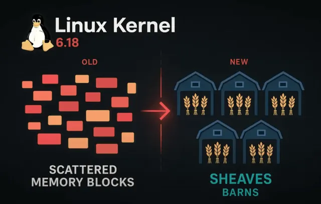 对于 Linux 内核 kmalloc/kfree 底层的 slab,实际上我们也需要类似的 per-CPU 机制,来减小 object 申请和释放时候跨 CPU 的锁竞争和跨 CPU 的 cache 同步等开销。Vlastimil Babka 的 patchset,把“农场”的 Sheaves 和 Barns 概念借用到内核中,以支撑 slab 的 per-CPU cache 能力。
