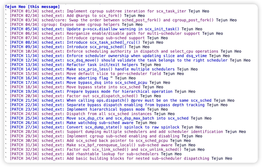 tj 的 patchset 一共 34 个 patch: