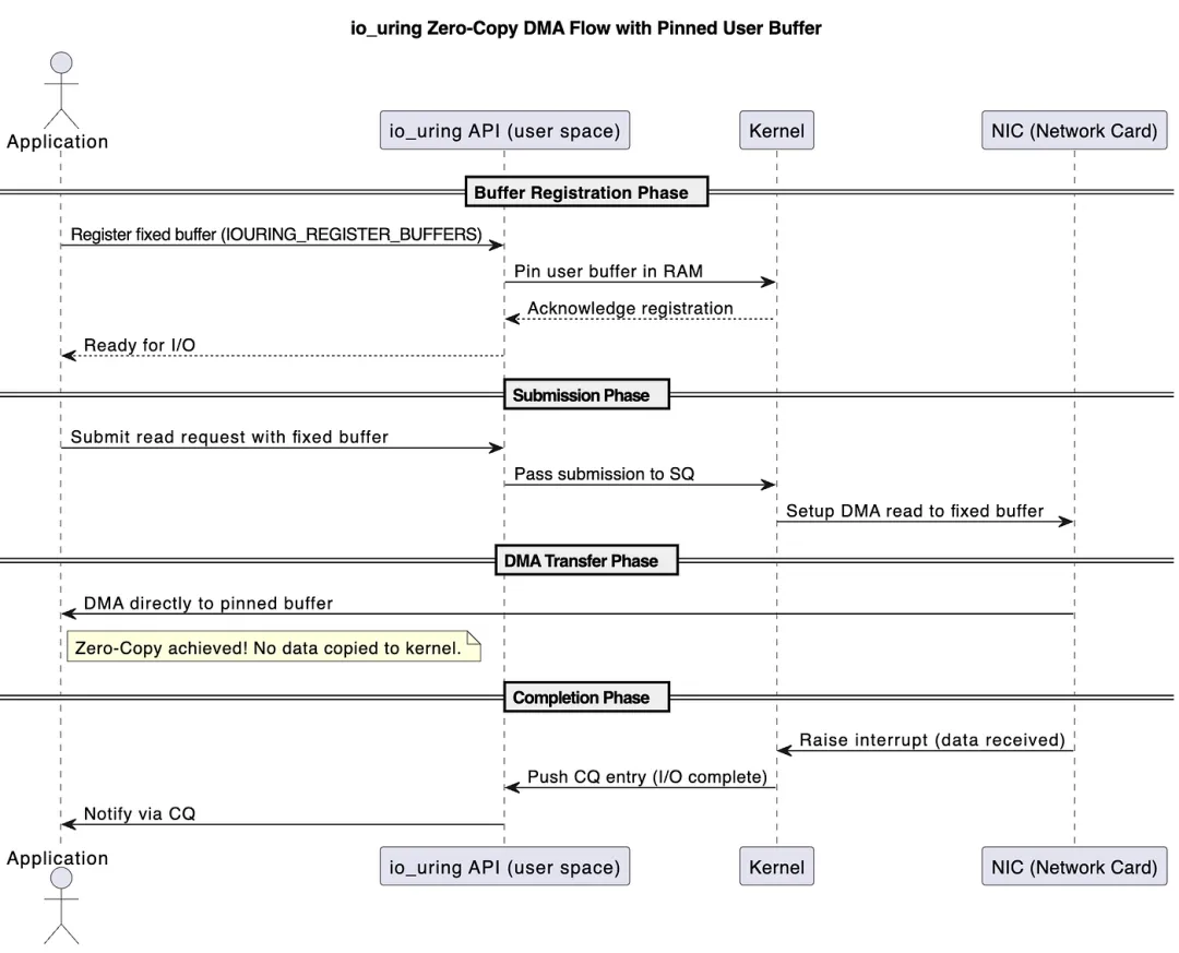 io_uring_prep_read_fixed(..., reg_buf_idx);注意这套能力不是给通用文件 I/O 准备的,而是给高性能数据管线 / 设备直通 pipeline 用的,不是 ext4 / f2fs 等文件读写。