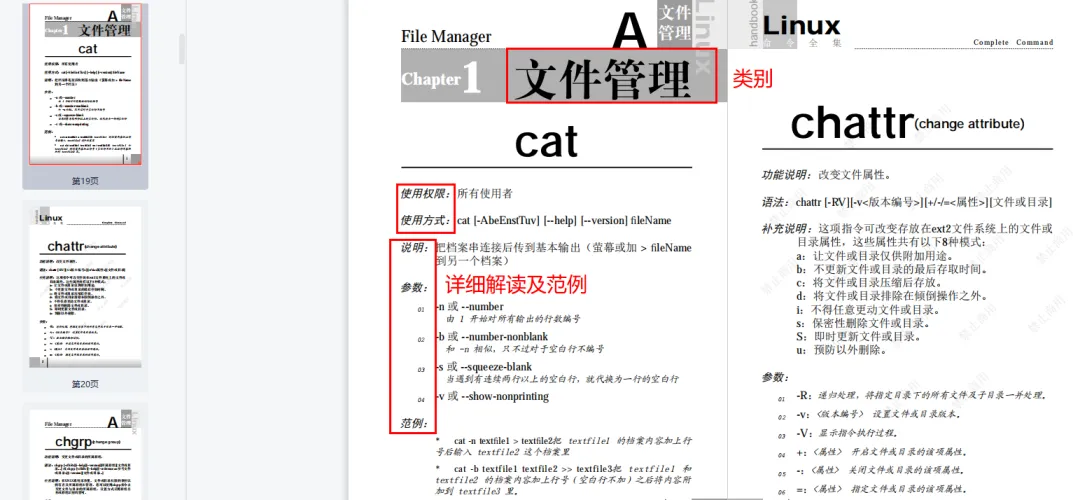 这份Linux命令大全完整版很适合作为补充使用,按照功能分类,功能说明、语法、参数一目了然。