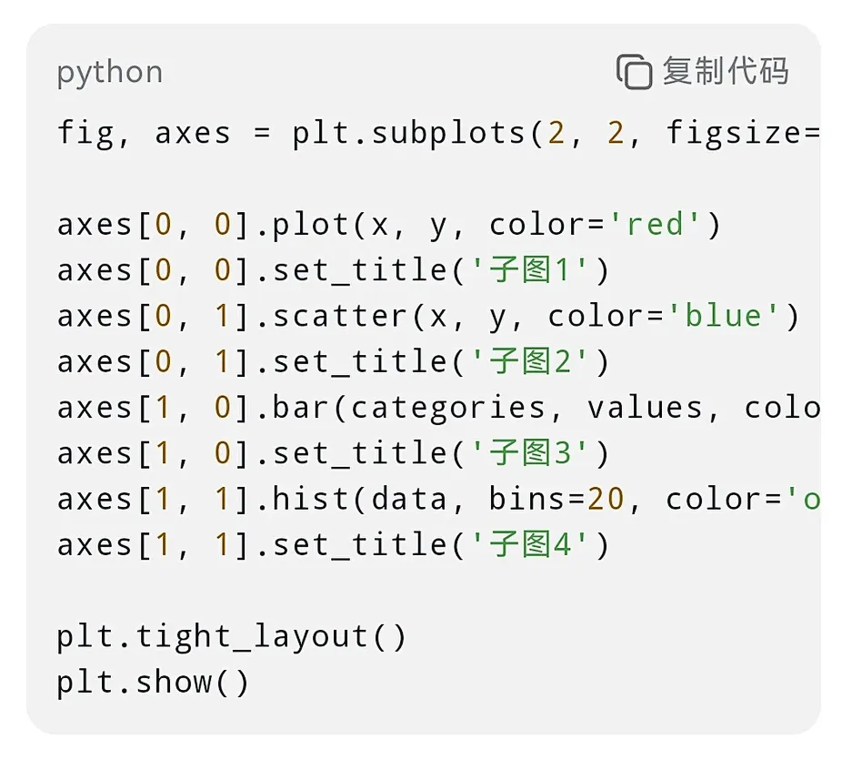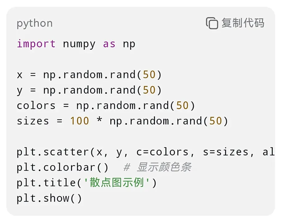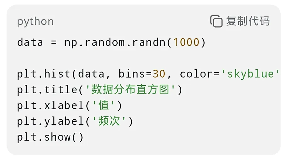以下是一些常用的python数据可视化代码,涵盖多种场景和库: