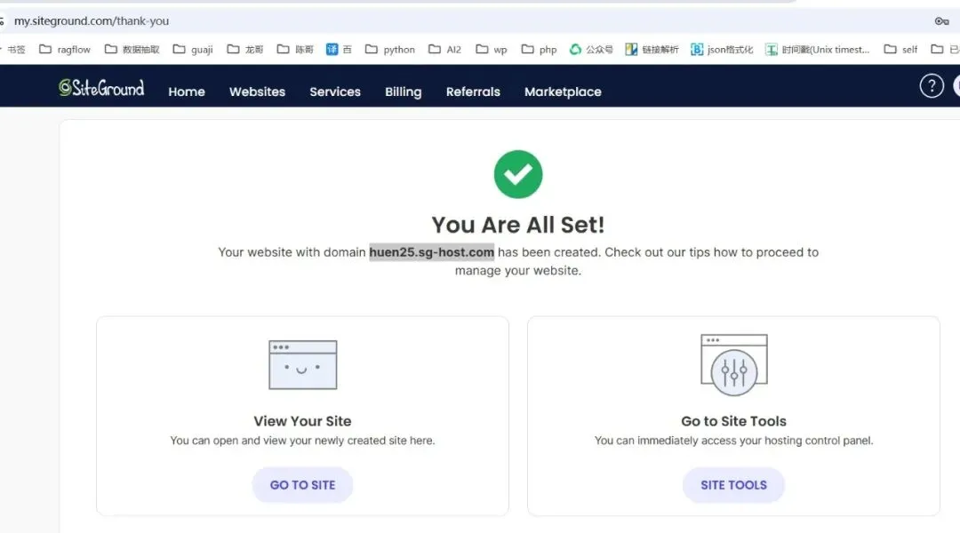 创建 MySQL 数据库:登录 SiteGround 账户,进入 Site Tools,选择 MySQL,创建新数据库,并为其分配具有完全权限的 MySQL 用户,记录下数据库名、用户名和密码 。