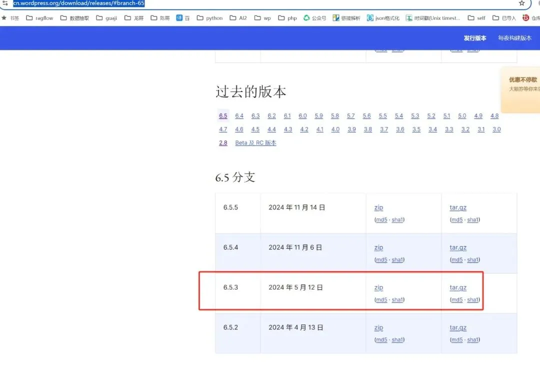 下载指定版本的 WordPress 安装包:从 WordPress 官方下载页面找到并下载所需版本的安装包 。