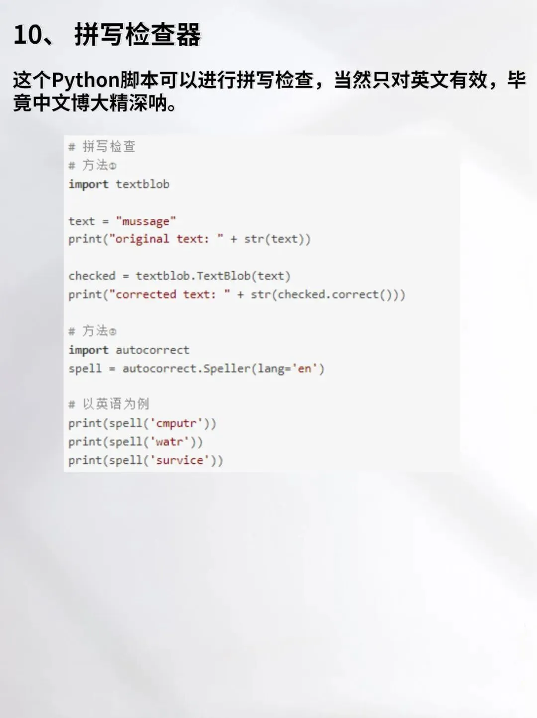 这 10 个有趣的高级脚本直接拯救你!涵盖自动生成表情包、智能聊天机器人、图片批量处理、数据可视化小游戏等趣味场景,每个脚本都简洁易懂、可直接运行,边玩边掌握 Python 高级用法,再也不用死磕枯燥语法,玩着就能拉高你的代码段位,新手也能轻松上手!
