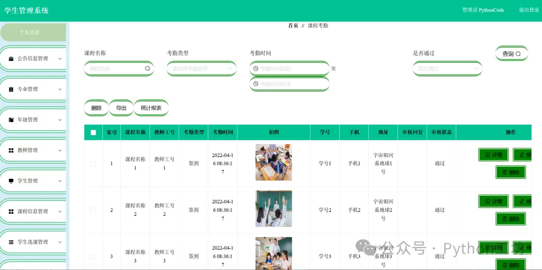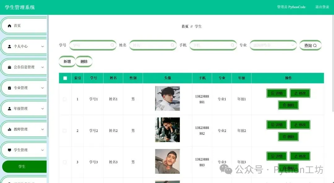 基于Python+Django+MySQL+Vue的学生信息管理系统
