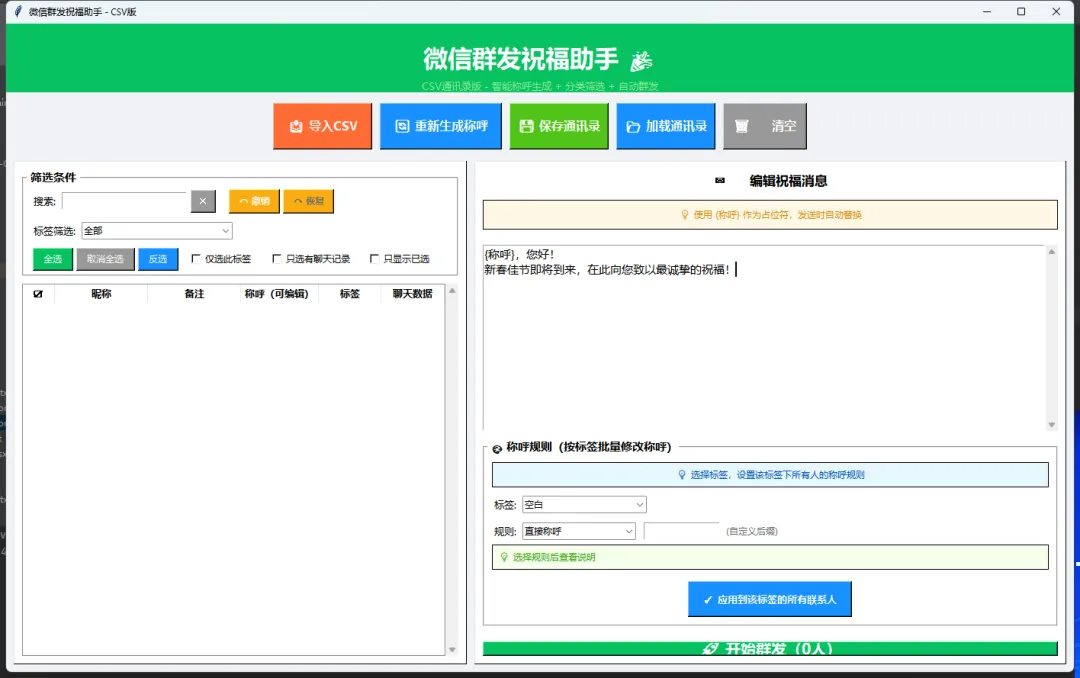 过年拜年祝福短信大家都发了么?有没有烦恼说群发消息要每条改对方称呼好麻烦?