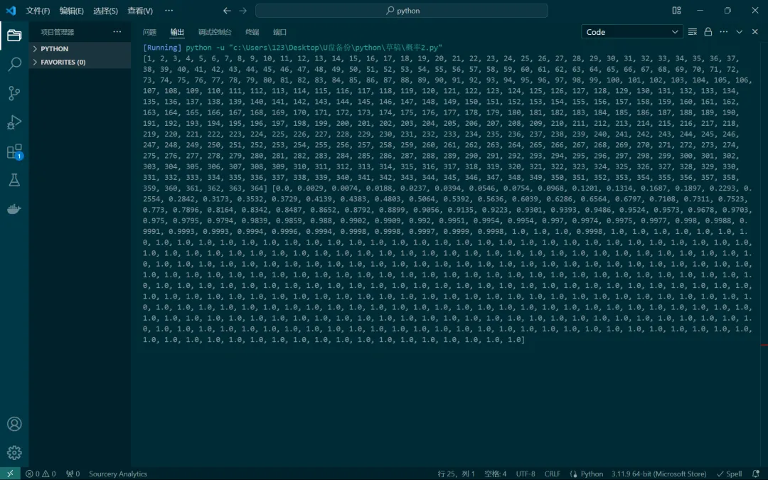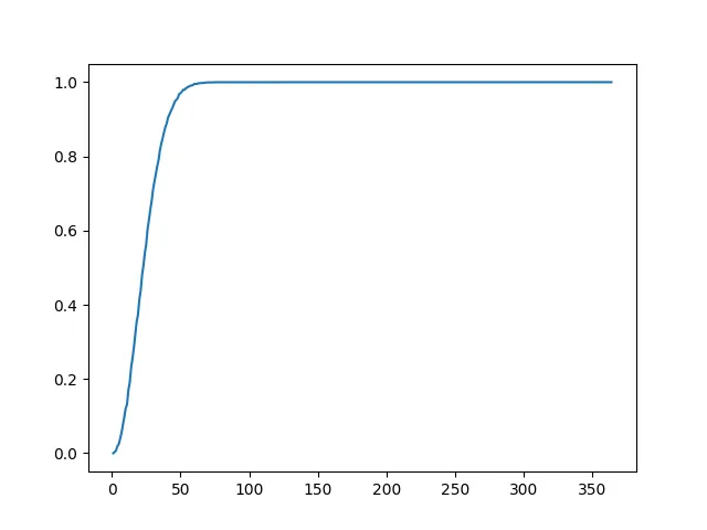 ↑也就是说,在模拟的1000000个50人“班级”里,出现至少两人同一天生日的有970189个,概率近似97%,验证成功