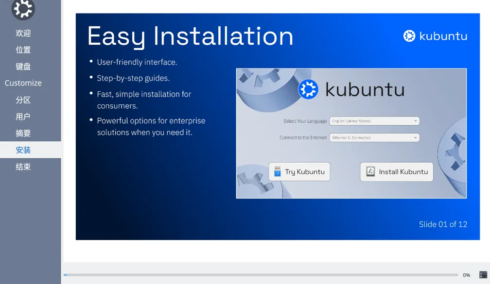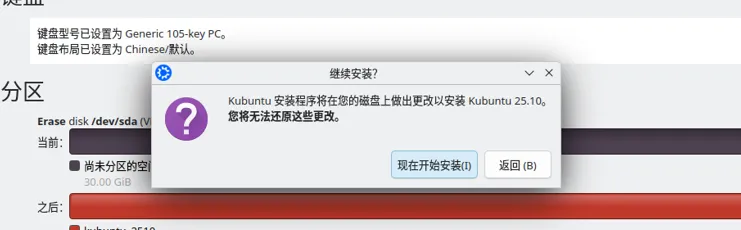 选定了发行版,下一步就是下载镜像,从官网上直接下载Kubuntu Linux 25.10的安装镜像,建立一个电脑开始安装。