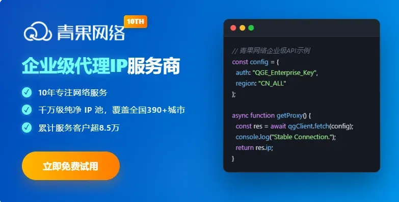 使用青果网络的代理IP服务,可从节点质量、接入方式、轮换机制、管理工具等多维度获得技术支持,为企业打造真正高效、安全、稳定的爬虫平台。想让你的Python爬虫又快又稳?立即体验青果网络的代理IP服务,为你的多线程爬虫系统全面提速!