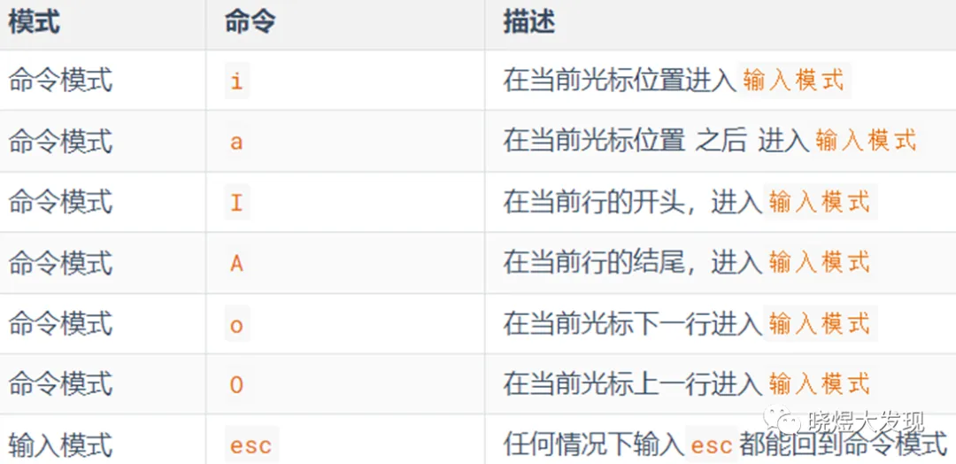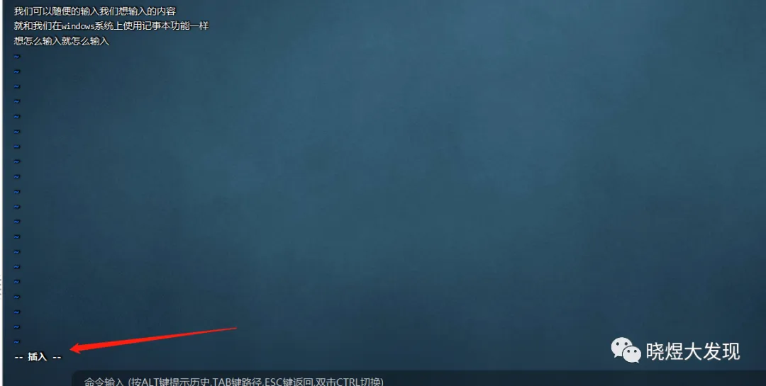 •输入模式,通过命令模式进入,可以输入内容进行编辑,按esc退回命令模式